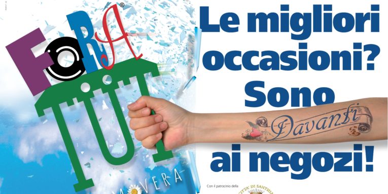 Sabato 5 maggio 2018 si inaugura per la prima volta a Santhià il “Fora Tüt”: la manifestazione organizzata da ASCOM che permette ai commercianti di esporre le migliori occasioni fuori dai negozi, da qui appunto il motto “fuori tutto”.