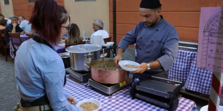La panissa è senza ombra di dubbio la specialità tipica di Vercelli, e proprio la panissa era il piatto preparato dagli chef del ristorante Vecchia Brenta in via Morosone durante la Ascom “White Night” di sabato scorso – oltre che alla preparazione della specialità il programma del ristorante per la serata prevedeva anche un dj set –. Cucinata, secondo la ricetta tradizionale che non ammette confusioni con la “paniscia” novarese (la quale, peraltro, ha un procedimento completamente diverso ndr), attraverso l’utilizzo di riso, lardo, salame (quello d’la duja ndr), fagioli borlotti, fagioli cannellini, vino rosso, brodo e giusto un cucchiaio di passata di pomodoro, è stato proprio il piatto tipico locale, che era possibile accompagnare a vini del territorio, fra i quali vi era un prodotto della Serra Vinchio-Vaglio delle terre dell’astigiano, ad attirare molte persone, e dunque a rappresentare un successo per l’iniziativa organizzata da la Vecchia Brenta. Che, in ultima analisi, ha saputo deliziare tanto i palati dei cittadini vercellesi – critici, ovviamente, in fatto di panissa – quanto appunto allietare le loro orecchie, grazie alla musica suonata dal dj set.