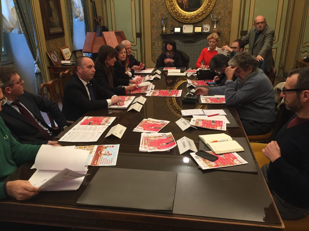 Il “Natale brillante 2017” è stato presentato oggi in sala giunta dal sindaco Maura Forte, dall’assessore Daniela Mortara, dal presidente Ascom Vercelli Tony Bisceglia, dal direttore di Confesercenti Germana Fiorentino, da Angelo Santarella (nelle vesti di vice presidente della Camera di Commercio di Vercelli Biella e di capo delegazione Ascom), dal presidente di Atena Sandro Baraggioli e da Gilberto Girardi di Atena Trading. Atena-Iren e Camera di Commercio sostengono economicamente il natale vercellese.